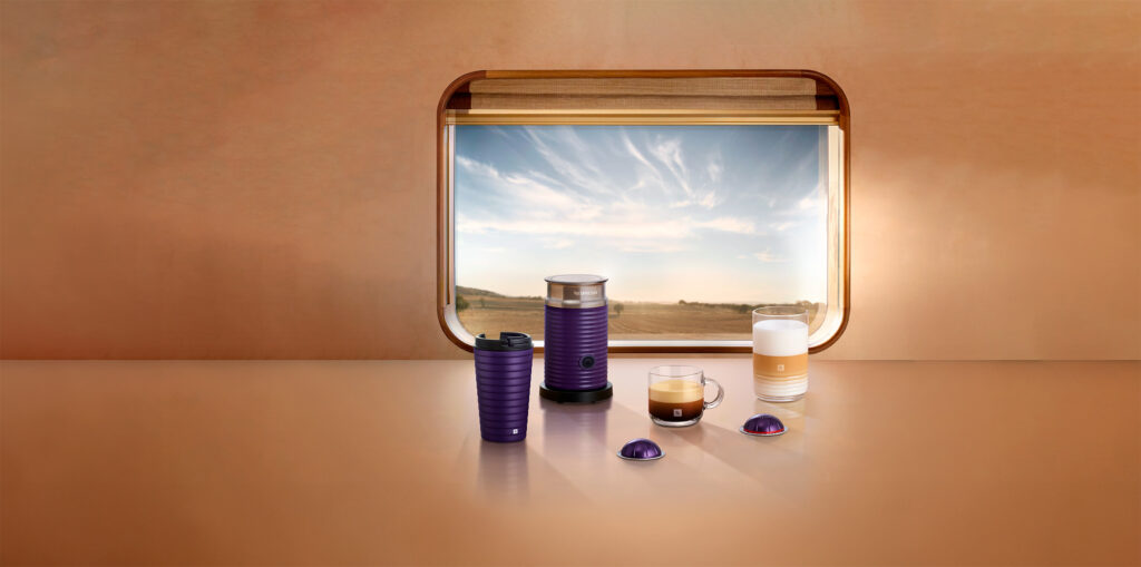 A sofisticação da campanha também se traduz no design. A Nespresso apresenta uma coleção especial de acessórios em tom de roxo profundo — cor símbolo de luxo, poder, mistério e elegância atemporal — inspirada no café Arpeggio, um dos clássico da marca há 30 anos. Ícone da torrefação curta e escura, com notas intensas de cacau, Arpeggio dá nome à coleção icônica e inspira a paleta visual da linha. Entre os destaques estão: a nova máquina Pixie Redesign Roxa, a Caneca Térmica Arpeggio e a xícara Pixie Espresso Arpeggio, que transformam a experiência do café em um ritual visual e sensorial completo.