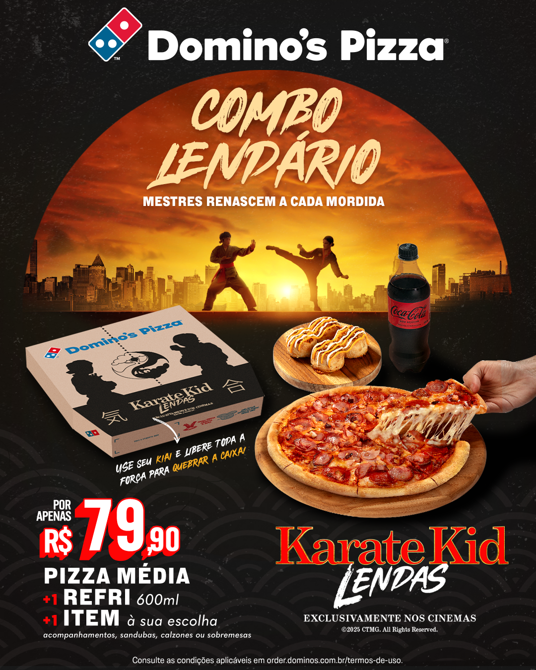 “A Domino’s tem se aproximado cada vez mais do universo geek e essa parceria com Karatê Kid: Lendas tem tudo a ver com nosso público. É uma franquia que desperta memórias afetivas, mas que também fala com uma nova geração. Acreditamos que unir pizza e cinema, com esse toque de nostalgia e diversão, é uma fórmula certeira e irresistível”, afirma Gabriel Ferrari, CMO da Domino’s Pizza Brasil.