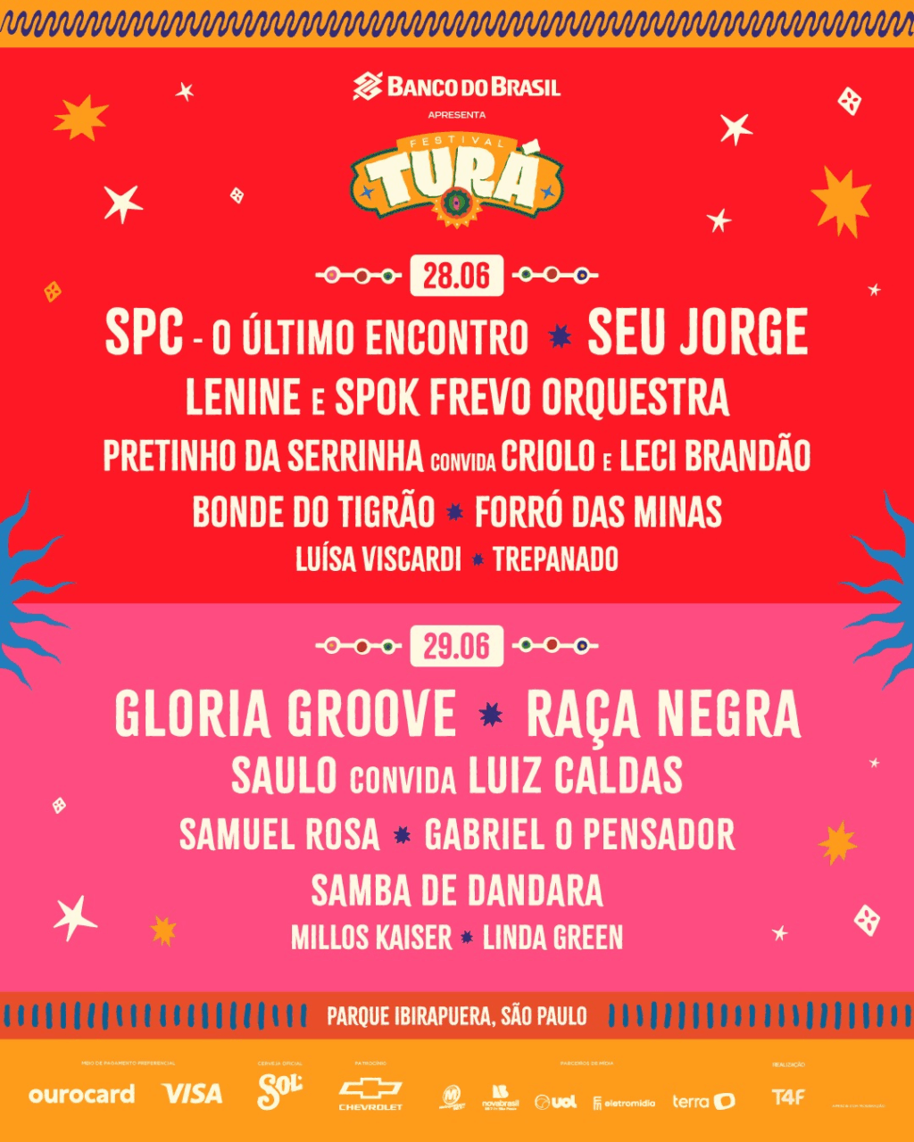 Maitê Quartucci, Head artístico Nacional da T4F, fala sobre a pluralidade do festival e a curadoria dos artistas. “Quando criamos o Turá, pensamos em um festival que representasse a riqueza e a diversidade da música brasileira. Não temos medo de misturar – essa é a essência do festival. O próprio nome “Turá” nasce de uma brincadeira com a palavra “misTura”, refletindo nosso desejo de unir sonoridades e histórias. Nosso time está sempre atento e, apesar dos desafios de construir um line-up, nosso compromisso é oferecer uma experiência única, onde, em uma mesma noite, o público possa transitar por diferentes gêneros, segmentos e regiões do país. Estamos muito animados com o line-up deste ano! Além de grandes nomes, teremos uma apresentação inédita na cidade de São Paulo: Lenine e SpokFrevo Orquestra. Esse encontro histórico traz ao palco duas potências de Pernambuco que, até agora, nunca haviam se apresentado juntas por aqui.”