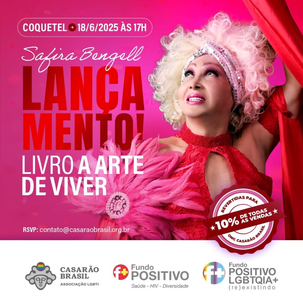 Como parte da programação do Mês do Orgulho LGBTQIA+, o Casarão Brasil – Associação LGBTI lança no dia 18 de junho, quarta-feira, às 17h, na sede da instituição, o livro “A Arte de Viver”, biografia da comendadora Safira Bengell, atriz transformista, produtora cultural, diretora artística e escritora, reconhecida como a “Dama da Diversidade Cultural Brasileira”. A obra é assinada pelo jornalista Enéas Barros.