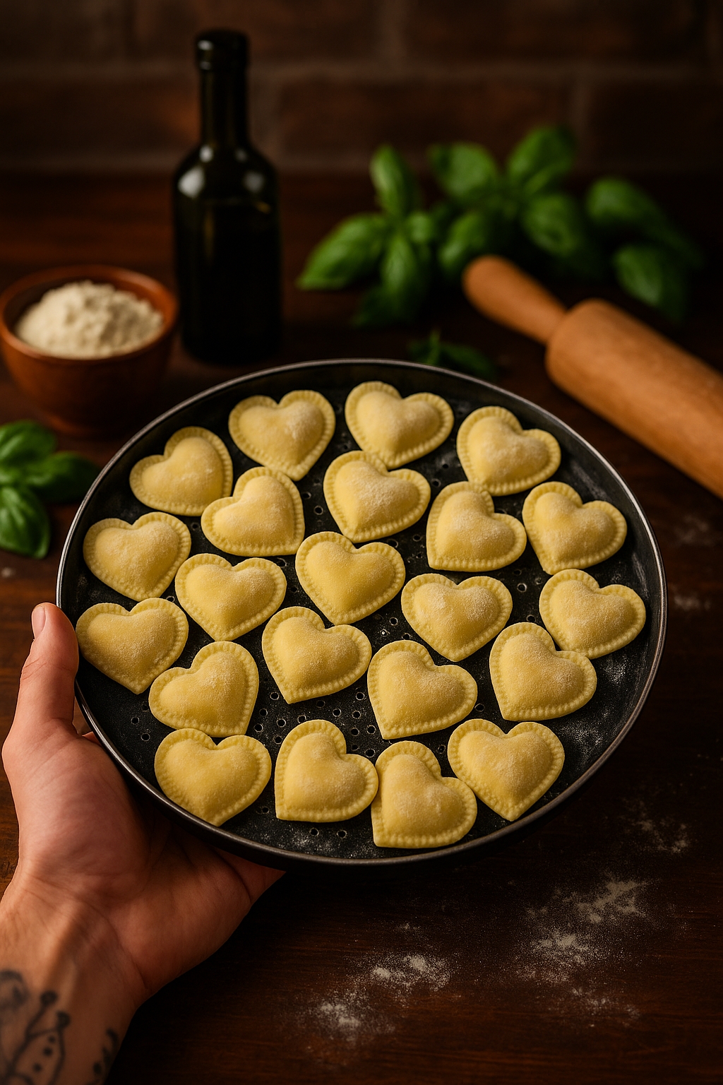 A receita da Benini para este dia especial mistura tradição e sofisticação. A massa artesanal, feita com ovos e farinha da melhor qualidade, ganha formato de coração e é recheada com muçarela de búfala e raspas de limão siciliano — um toque cítrico que equilibra o sabor e dá leveza à preparação.