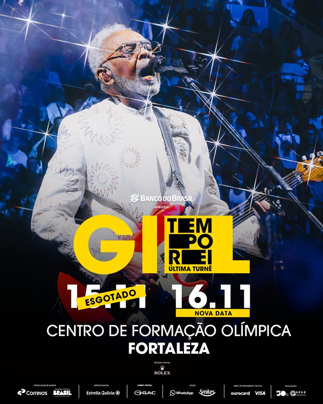 Desde que subiu ao palco pela primeira vez em Fortaleza, Gilberto Gil construiu uma ponte de afeto com o Ceará — terra de ritmos vibrantes, poetas marcantes e um público sempre caloroso. Um dos momentos mais marcantes dessa relação foi a turnê “Refestança”, de 1977, em que cantou ao lado de Rita Lee e, assim, fez história na capital cearense. Gil voltou à cidade em diferentes fases de sua carreira, ao longo das décadas, sempre acolhido com entusiasmo por gerações que acompanham sua trajetória em coro. Agora, com a sua última turnê, TEMPO REI, o artista reencontra os fãs em clima de celebração: a apresentação anunciada para o dia 15 de novembro, no Centro de Formação Olímpica, teve todos os ingressos esgotados e a cidade ganha uma data extra, no dia 16 de novembro, no mesmo local. Clientes do Banco do Brasil com cartões Ourocard Visa terão pré-venda de entradas com benefícios exclusivos a partir das 10h do dia 25 de junho e a venda geral começa ao meio-dia, do dia 30 de junho, ambas no site da Eventim (acesse aqui).