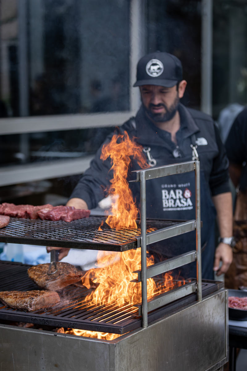 Já o chef Diogo Menezes apresentará vazio de wagyu, pão de alho e pupunha grelhada da Palmitaria Brasil, acompanhados por purê de batata na manteiga, chimichurri de manga com manjericão e vinagrete de caju. Os chefs convidados Cassiano Rubi e Ed Medrado do Lolla Meets Fire e Sarjeta Bar, comandarão a estação de parrilla com costela suína defumada e carré de cordeiro, acompanhados por barbecue de goiabada, farofa de cebola tostada e chimichurri de hortelã.