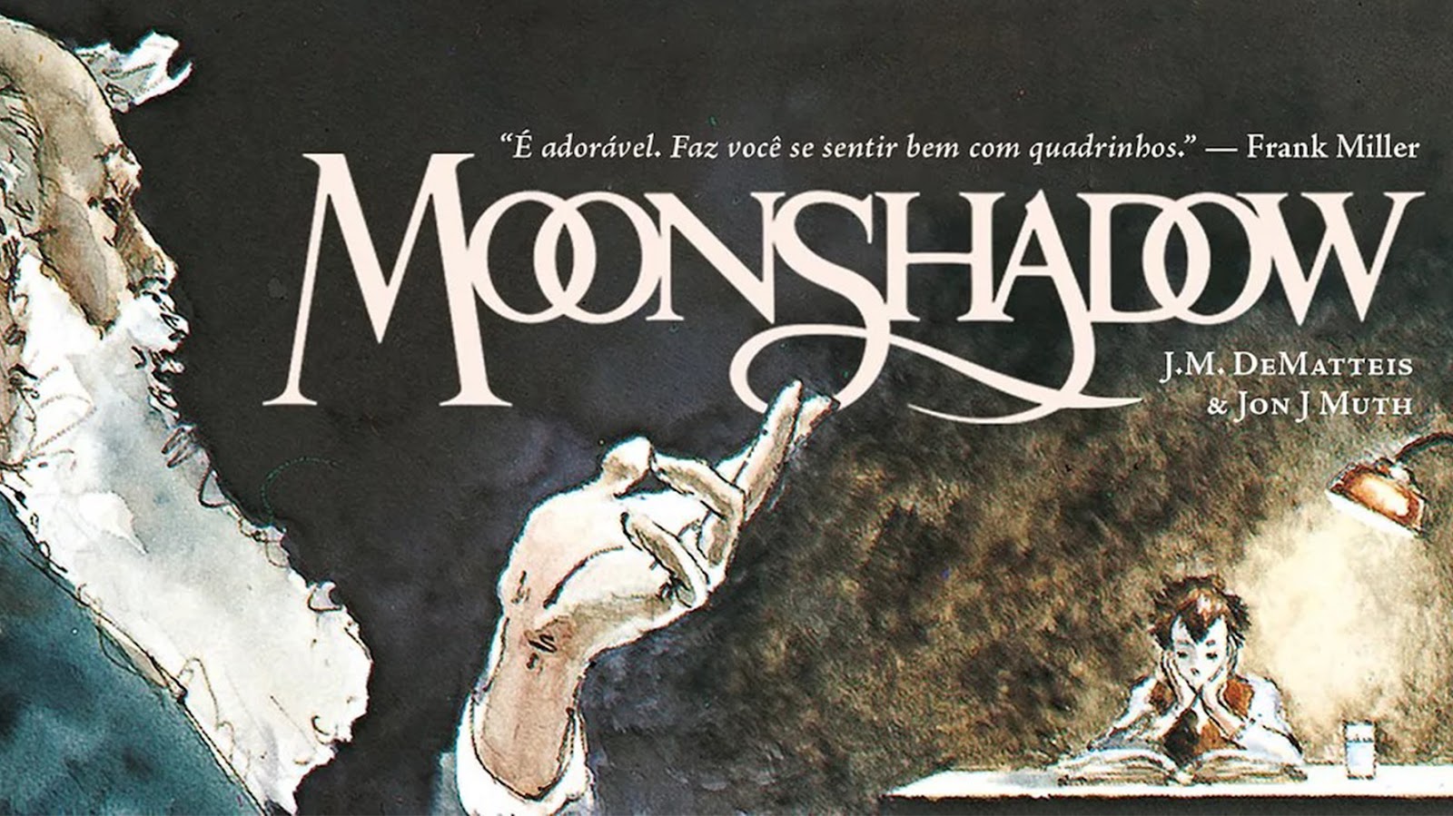 À esquerda, J. M. DeMatteis durante o evento “Etna Comics” em 2018,. À direita, capa de Moonshadow que tem edição especial no Brasil pelo selo da editora Pipoca & Nanquim.