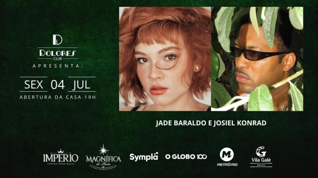 Jade Baraldo, voz poderosa e visceral que transita entre o pop experimental e a MPB contemporânea, e Josiel Konrad, cantor e trombonista que carrega a força da Baixada Fluminense em sua arte, chegam ao palco do Dolores Club, na Lapa, no dia 04 de julho, sexta-feira, às 20h, para uma apresentação arrebatadora.