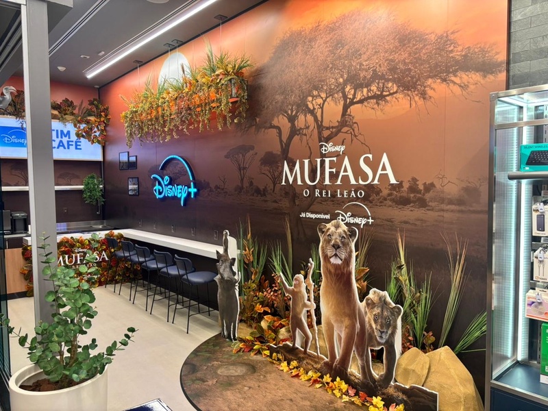 A ação promove ativações temáticas inspiradas em grandes lançamentos do catálogo de Disney+ dentro do café da flagship da TIM; primeira ambientação é dedicada ao filme Mufasa: O Rei Leão