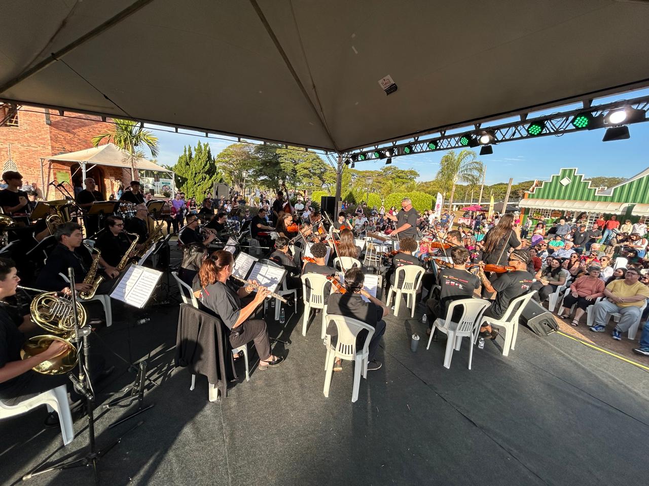 O concerto Tons do Brasil emocionou o público de Holambra na tarde do último dia 20 de julho, dando sequência à sua turnê pelo interior paulista que promete encantar mais cidades com sua proposta única de música instrumental. Sob a regência do Maestro Carlos Lima, a Orquestra Lyra Mojimiriana trouxe ao palco versões sinfônicas inéditas de grandes sucessos da música brasileira, envolvendo a plateia com um repertório vibrante que passeou por samba, bossa nova, pop rock e muito mais.