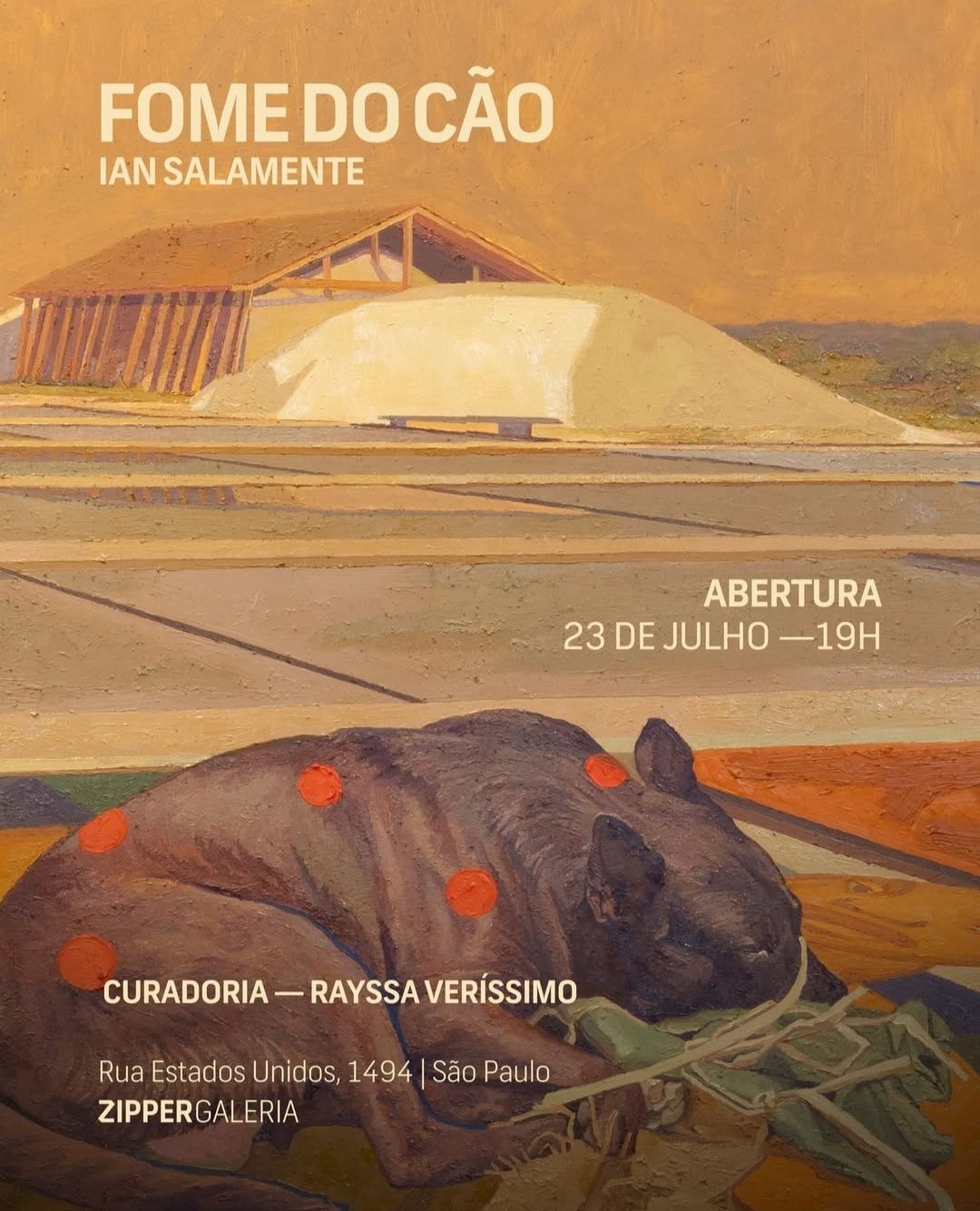 A Zipper Galeria inaugura no dia 23 de julho, às 19h, a exposição Fome do Cão, primeira individual de Ian Salamente em São Paulo. Com curadoria de Rayssa Veríssimo, que também foi curadora de “Do sal ao estreito” , realizada em 2025 no Centro Cultural Correios. A mostra reúne um conjunto de pinturas que exploram os atravessamentos do cotidiano urbano a partir das margens da cidade. Entre as obras, estão incluídos trabalhos inéditos e uma pintura premiada no 16° Salão dos Artistas Sem Galeria.