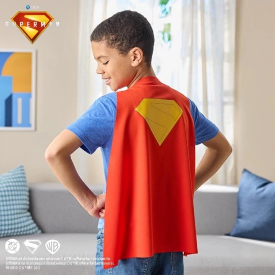 Roleplay Superman Clássico (R$249,99) – Com capa e símbolo do herói, os fãs podem se transformar no próprio Superman e viver suas histórias épicas vestindo o item essencial de um super-herói