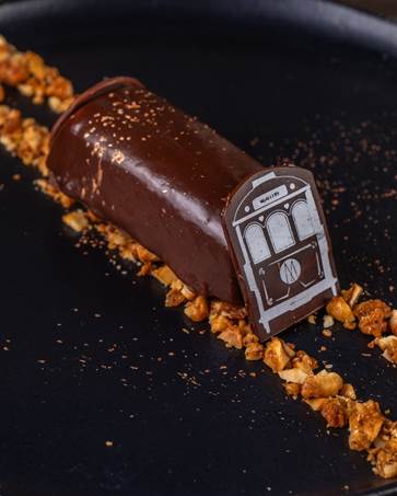 Finalizando o menu em 3 tempos, uma sobremesa elaborada por Danielle Reny De Lavor. O doce é uma homenagem ao bairro de Santa Teresa e encanta pelo mix de sabores. O Bondinho de Chocolate com Cupuaçu é um entremet de chocolate 70% e cupuaçu, acompanhado de caramelo de cupuaçu e crocante de castanhas do Pará.