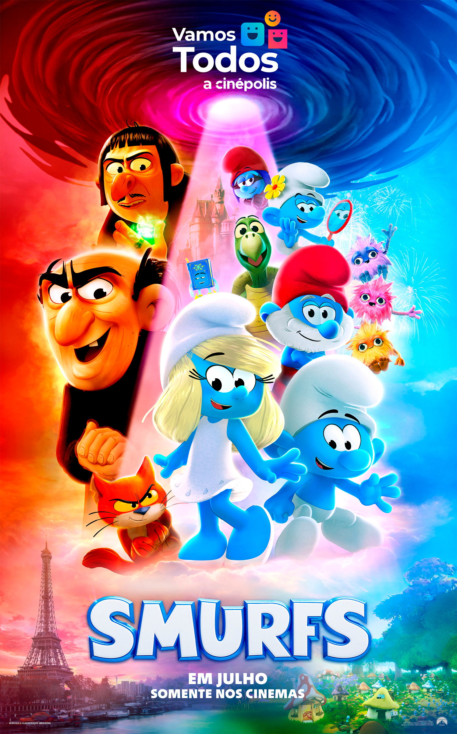 O “Vamos Todos a Cinépolis” é uma iniciativa global que oferece, sem nenhum custo, ingressos para uma sessão de cinema, acompanhada de pipoca e refrigerante, proporcionando uma experiência completa e inesquecível para o público. Este ano, cada complexo da rede receberá aproximadamente 200 convidados, que terão a oportunidade de assistir à animação Smurfs. Um dos filmes mais aguardados do ano, o longa traz de volta os icônicos personagens azuis em uma jornada repleta de aventuras, humor e amizade, enquanto tentam proteger sua vila dos planos do vilão Gargamel.