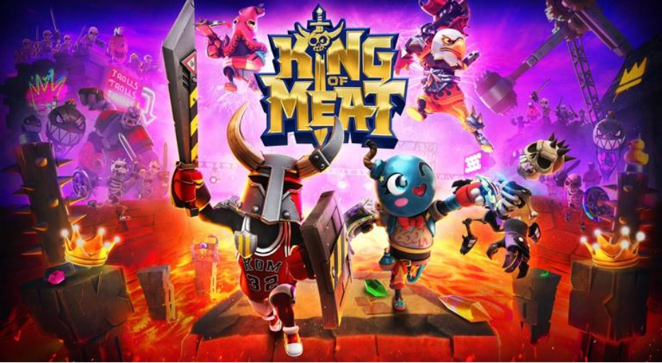 King of Meat é um jogo de plataforma cooperativo que coloca até 4 jogadores em masmorras tortuosas cheias de quebra-cabeças para resolver, desafios para atravessar e monstros ridículos para lutar. Os jogadores competirão em masmorras oficiais, masmorras construídas pela comunidade ou poderão liberar sua própria criatividade para construir masmorras únicas e divertidas para outros jogadores.
