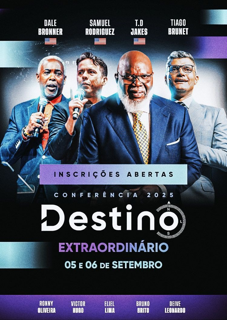 A espera está quase no fim: faltam poucos dias para a Conferência Destino 2025, que acontece dias 5 e 6 de setembro na Farmasi Arena, na Barra da Tijuca (RJ). Sob a liderança de Tiago Brunet, o evento reunirá nomes de peso em dois dias de imersão e ensinamentos que prometem marcar profundamente a trajetória dos participantes.