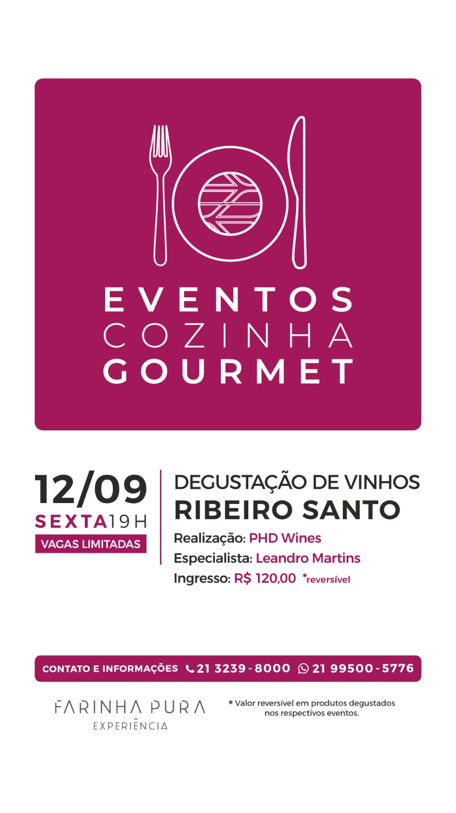 Na próxima sexta-feira, dia 12 de setembro, às 19h, o Empório Farinha Pura, em Botafogo, promove mais uma edição especial do seu projeto Eventos Cozinha Gourmet. A experiência da vez será uma degustação exclusiva dos vinhos Ribeiro Santo, realizada em parceria com a PHD Wines.