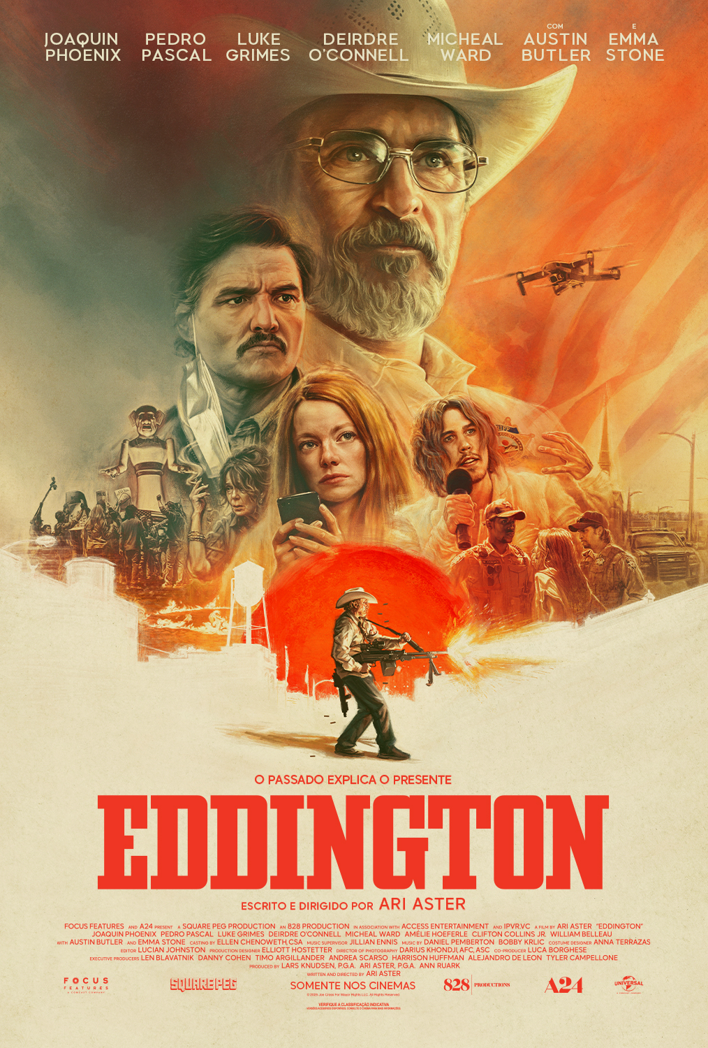 A Universal Pictures divulga hoje o primeiro trailer e cartaz de “Eddington” (Eddington), novo filme do diretor Ari Aster, protagonizado por Joaquin Phoenix, vencedor do Oscar por “Coringa”, Pedro Pascal, astro de “The Last of Us” e “The Mandalorian” e a duas vezes ganhadora do Oscar Emma Stone. O longa marca a primeira parceria entre os atores e o cineasta, conhecido por sucessos como “Hereditário” e “Midsommar”.
