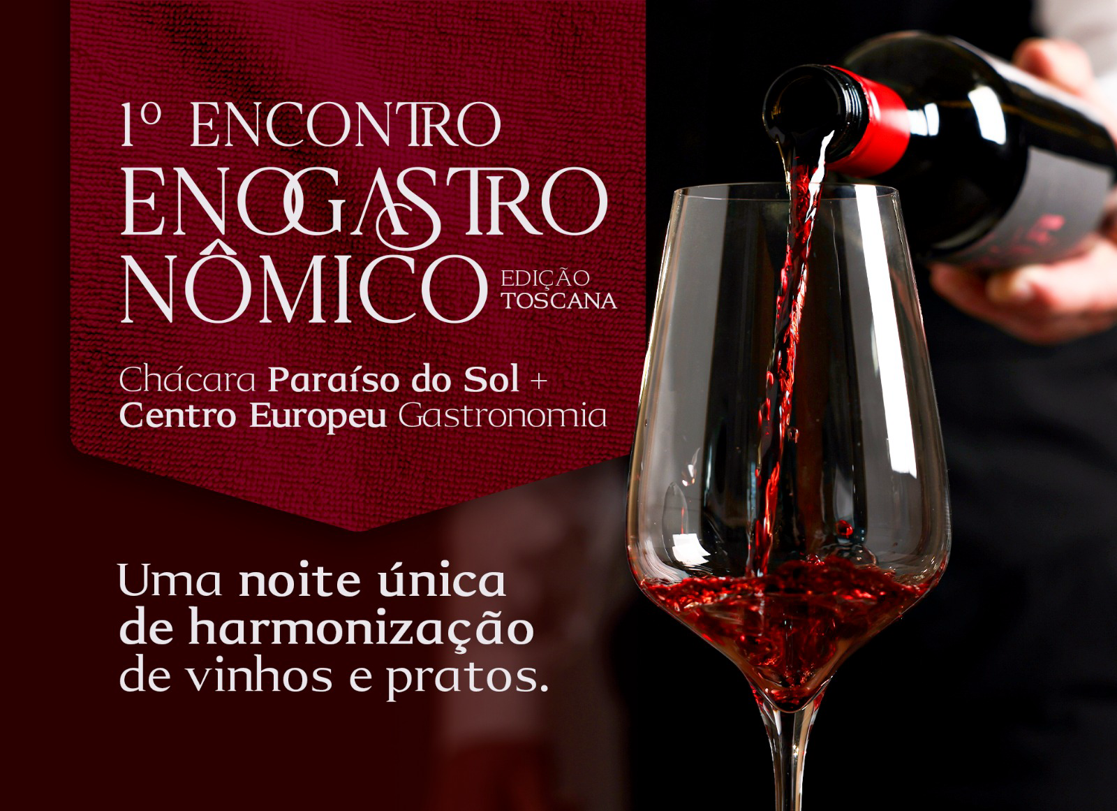 Aprender ou aprofundar o conhecimento sobre harmonização de espumantes brasileiros – de Pinto Bandeira e dos vinhos da renomada regiões de intensidade marcante da Toscana – com a alta gastronomia é a proposta de um encontro que acontece no dia 25 de setembro, às 19h30, na Chácara Paraíso do Sol, localizada em Campo Largo, a 10 minutos do Parque Barigui.