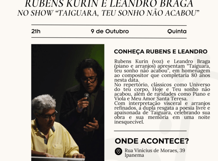 O VINICIUS SHOW de Ipanema tem o prazer de apresentar no Dia 09/10 (5ªf 21h) o show “TAIGUARA, TEU...
