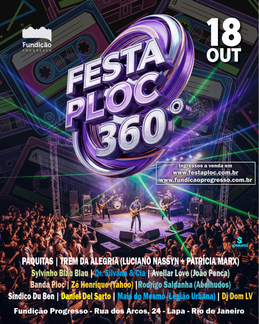 A Festa Ploc 360º chega à Fundição Progresso no dia 18 de outubro com atrações como Paquitas, Trem da Alegria (Patricia Marx e Luciano Nassyn), Banda Ploc, Zé Henrique (Yahoo), Silvinho Blau Blau, Dr. Silvana & Cia, Avellar Love (João Penca & Seus Miquinhos Amestrados), Felipe Dylon, Banda Eu Convidado, Luciano Bahia e muito mais. O evento retrô estreia um novo formato de show, com um palco 360 graus que vai colocar o público ainda mais próximo do seu artista preferido.