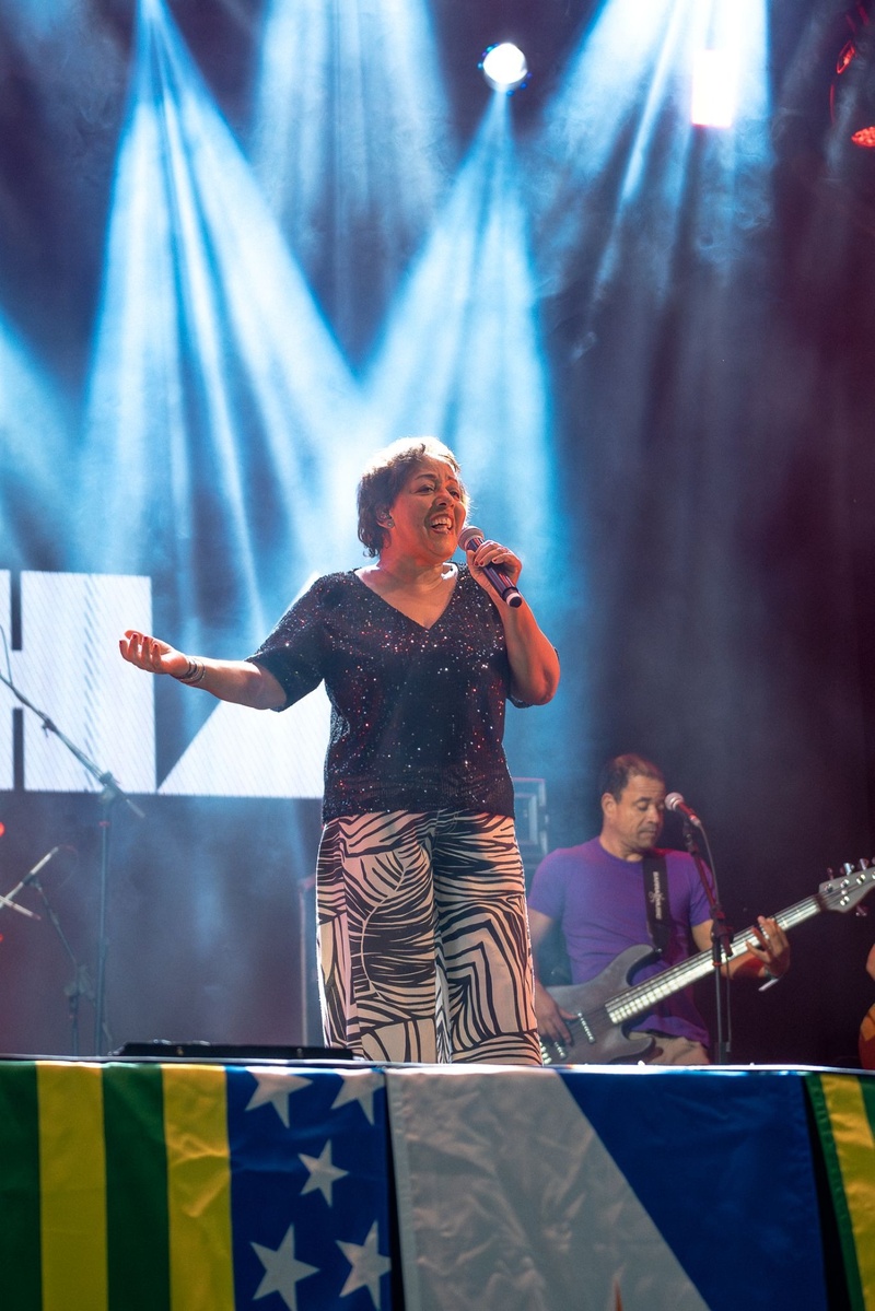 Sacudindo o palco Aurora, toda a potência e representatividade da artista trans Valéria Barcellos, o estilo único que mescla MPB, soul, hip hop e samba rock da mineira Augusta Barna, e a banda lisboeta de rock, indie rock e indie pop Capitão Fausto.