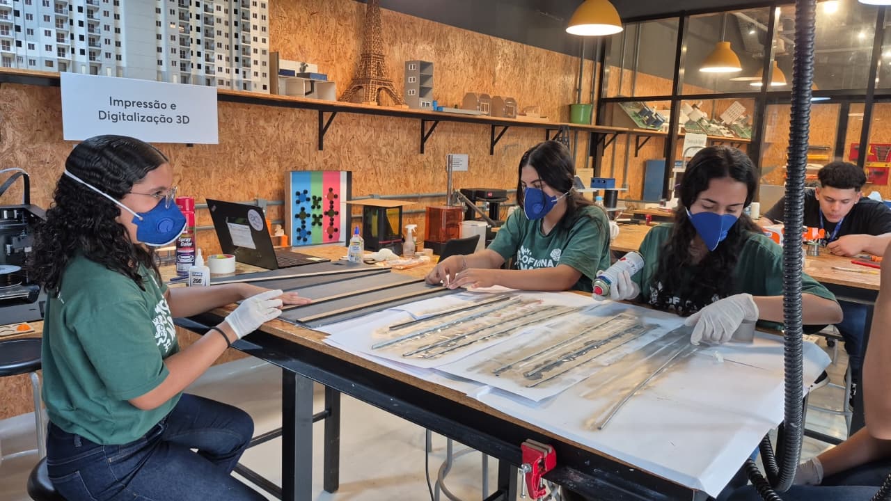 Para Gabriel Nunes, 17 anos, as lições do Oficina Maker vão além da ciência. “O projeto Oficina Maker está nos ensinando energia renovável e matriz energética, mas também estou aprendendo muito sobre trabalho em equipe.” – afirma o jovem.