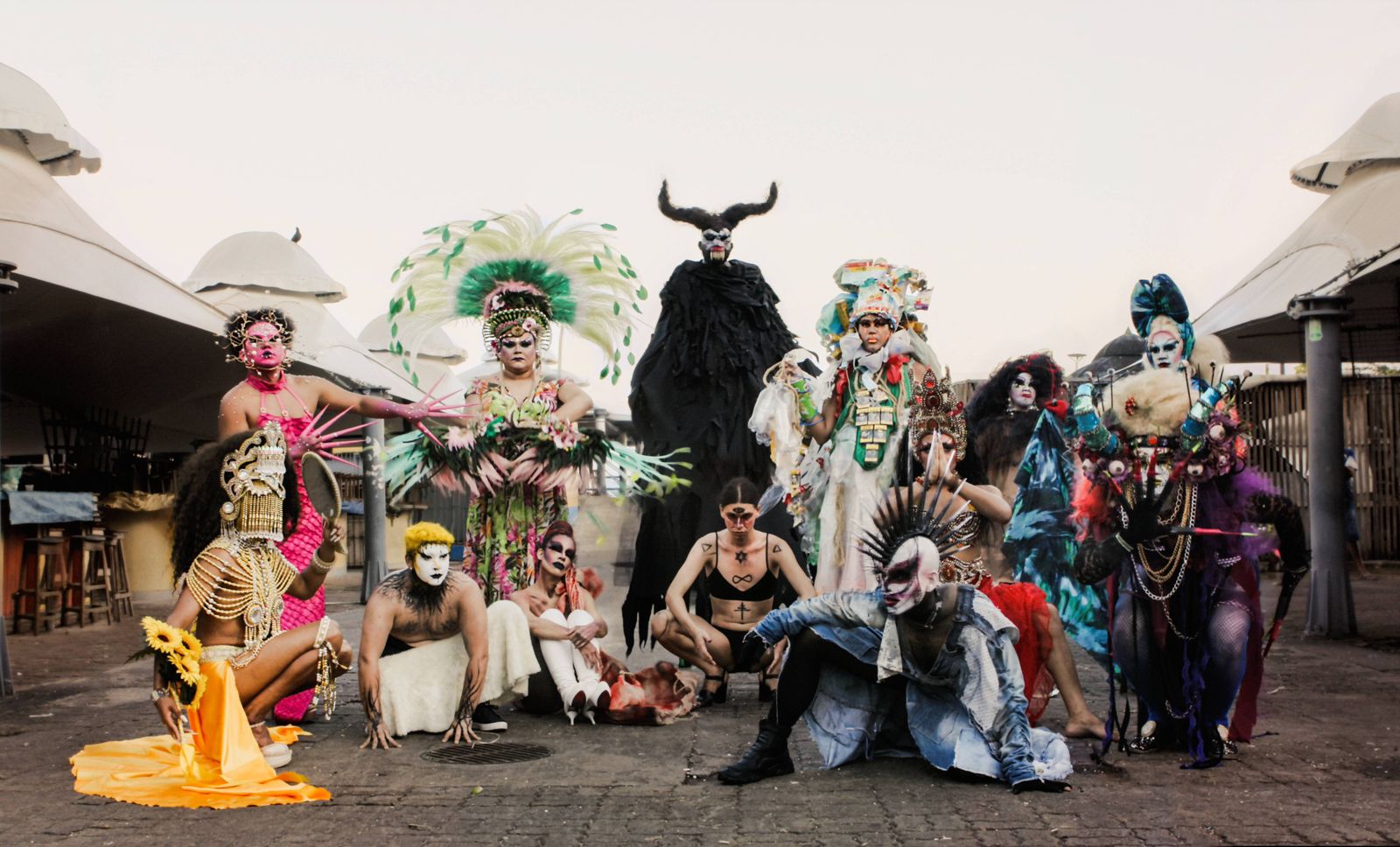 Formadas em Belém, as Themonias são um coletivo de artistas LGBTQIA+ que transformam a estética, a performance e o corpo em instrumentos de resistência e reinvenção da identidade amazônica. Criado em 2014 a partir da festa Noite Suja, o grupo reúne hoje cerca de 200 integrantes que misturam referências da cultura local, como o tecnobrega, o carimbó e as lendas dos rios e arte contemporânea. Com figurinos feitos de materiais reaproveitados e uma linguagem própria, as Themonias subvertem padrões coloniais e religiosos, reivindicando o direito de existir e criar a partir de uma Amazônia periférica, preta e queer.