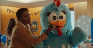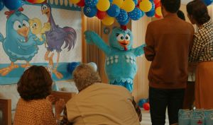 No longa, a Galinha Pintadinha integra uma das cenas mais divertidas da história: a festa de 1 ano de Nina, filha da protagonista Manu. Toda a celebração é ambientada com o universo da Popó, desde a decoração temática até a fantasia usada pela mãe, que se veste como a clássica Popó, reforçando o vínculo afetivo entre a personagem e as famílias brasileiras.