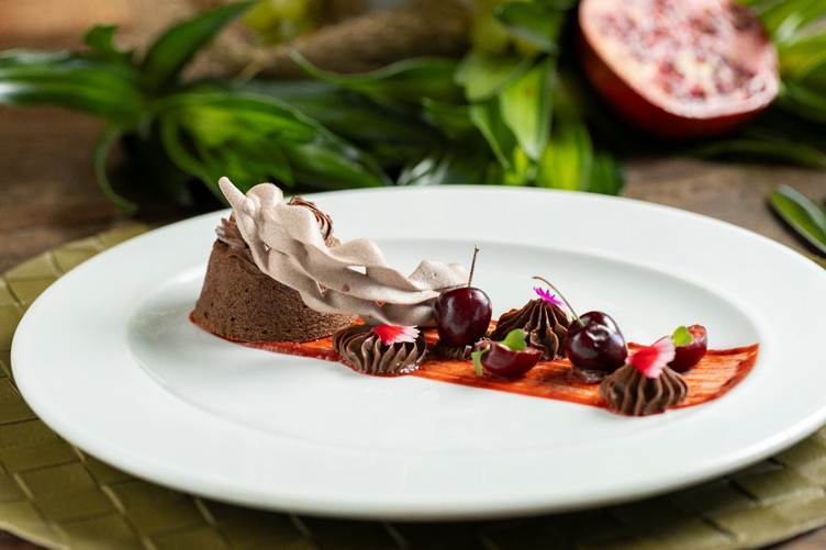Nos pratos principais, o cardápio oferece uma ode à gastronomia contemporânea: pato confitado com figos no caramelo de balsâmico, ragout de lentilha de puy e molho de vinho; camarões VG com creme de milho defumado, farofa de bacon doce e aspargos terra e mar; ou a opção vegetariana esfera de tofu com tomates coloridos, manjericão roxo e molho de castanhas. Para encerrar, três sobremesas que encantam pelo sabor e pela apresentação: texturas de caju (mousse, compota, biscuit e praliné de castanha de caju), Bûche de Noël vegana de coco, abacaxi e hortelã e o elegante Chococherry, que combina suspiro de cacau, cremoso de chocolate, mousse e gel de cereja. Toda a experiência é acompanhada por um menu harmonizado com espumante e vinhos selecionados.