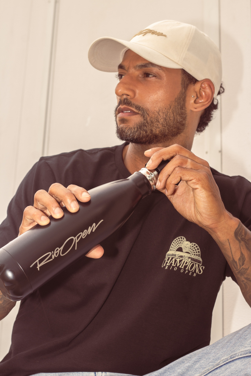 Outro destaque da temporada 2026 é a t-shirt Campeões (R$ 170), que homenageia todos os vencedores do torneio — uma verdadeira peça de coleção para os fãs. O design celebra nomes que marcaram a história do Rio Open, como Rafael Nadal (2014), David Ferrer (2015), Pablo Cuevas (2016), Dominic Thiem (2017), Diego Schwartzman (2018), Laslo Djere (2019), Cristian Garín (2020), Carlos Alcaraz (2022), Cameron Norrie (2023) e Sebastián Báez (2024 e 2025).