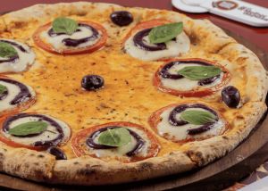 | Caprese A redonda aposta em ingredientes que equilibram suavidade e aroma natural. A base de muçarela harmoniza com as fatias de tomate frescas e realça o sabor da muçarela de búfala, criando uma textura delicada e cremosa, sem pesar. O pesto de azeitonas entra na medida certa para acentuar o paladar, enquanto as folhas de manjericão trazem frescor e sensação de leveza a cada pedaço. Pode ser encontrada a partir de R$ 69,90. |