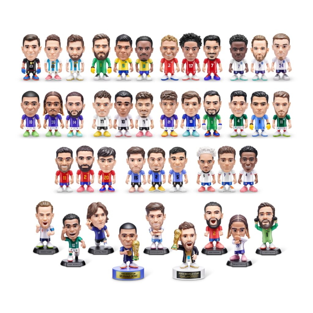 A coleção traz jogadores em poses icônicas de comemoração e personagens que capturam momentos históricos da competição, como a celebração de Lionel Messi com a taça de campeão em 2022. Os fãs também poderão encontrar nomes como Harry Kane e Kylian Mbappé, além dos brasileiros Alisson, Gabriel Magalhães e Casemiro.