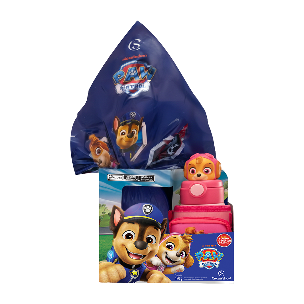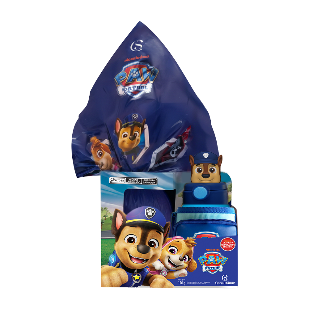 Ovo Patrulha Canina 170g com Garrafa | Consumidor: R$159,99 | Cacau Lovers: R$149,99