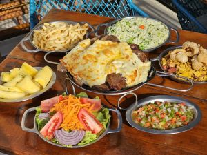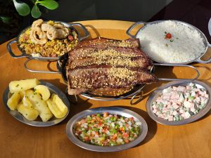 - Picanha argentina – R$ 189,90 (2 pessoas) ou R$ 239,90 (4 pessoas) – servida com arroz branco ou arroz com brócolis, salada de maionese, vinagrete, mandioca e tropeiro