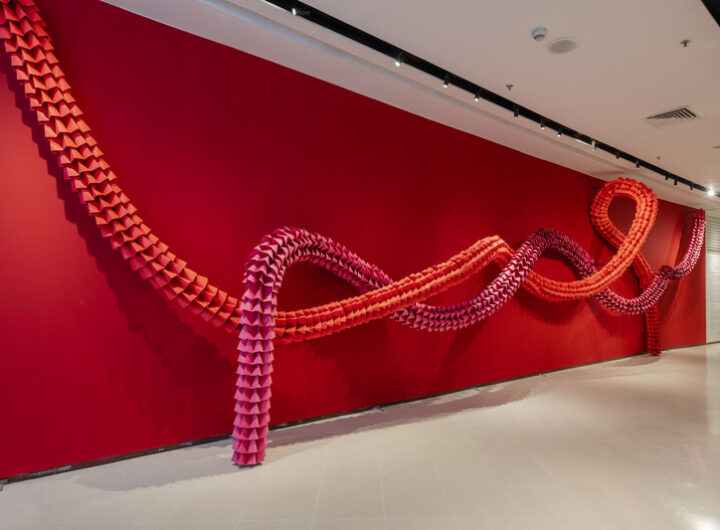 Inspirada na tradição do kusudama, instalação transforma delicadeza e memória em construção espacial contínua Crédito: Divulgação Em...